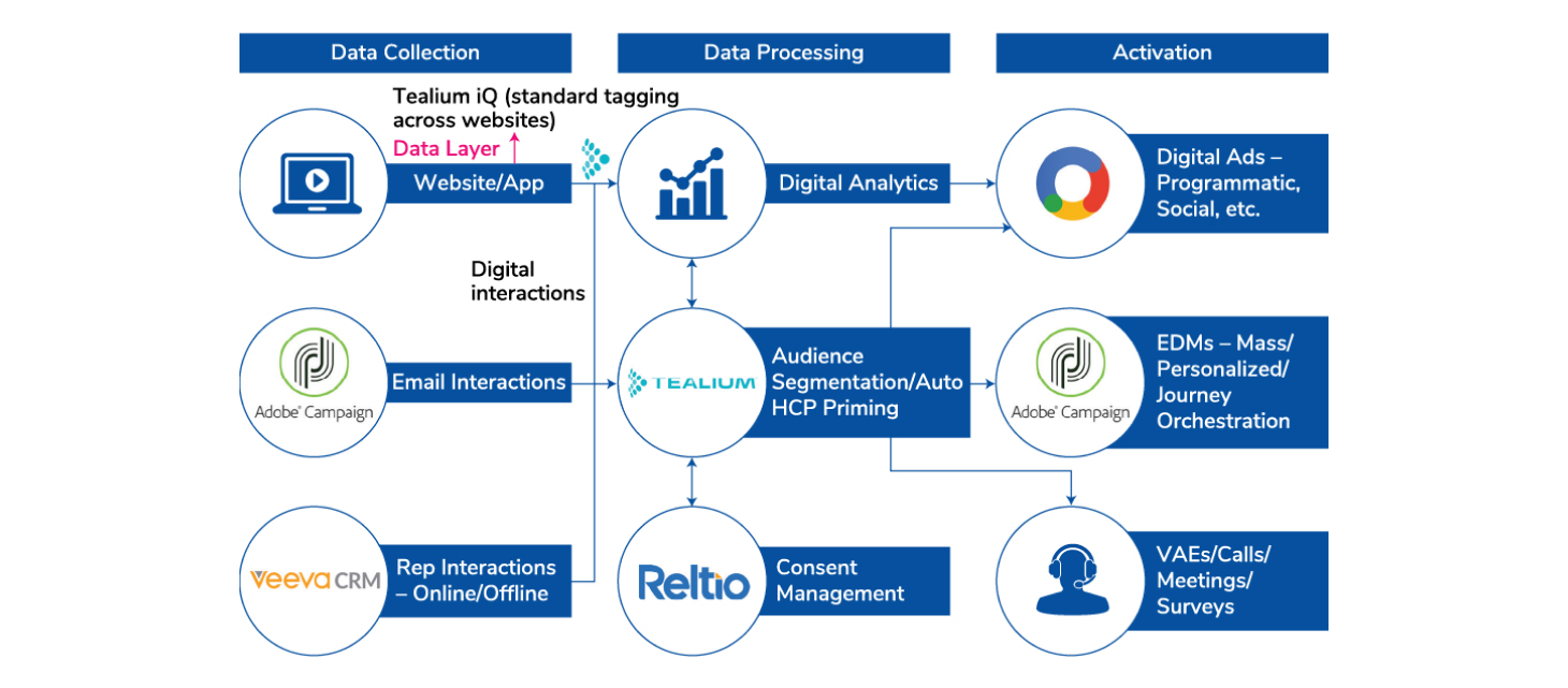 This is where the data layer plays a pivotal role in the MarTech infrastructure. Acting as a structured conduit for data flow, the data layer enables real-time capture of user interactions, preferences, and behaviors across various platforms and touchpoints. This data wealth empowers life sciences brands to fine-tune their messaging, tailor their content, and optimize their engagement strategies for both HCPs and patients. As a result of this, the data layer not only enhances the accuracy of decision-making but also forms the bedrock for the establishment of enduring relationships that are built on relevant and valuable interactions, fostering brand loyalty and credibility in the life sciences domain.
